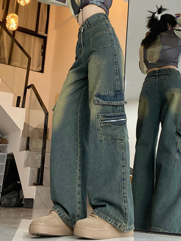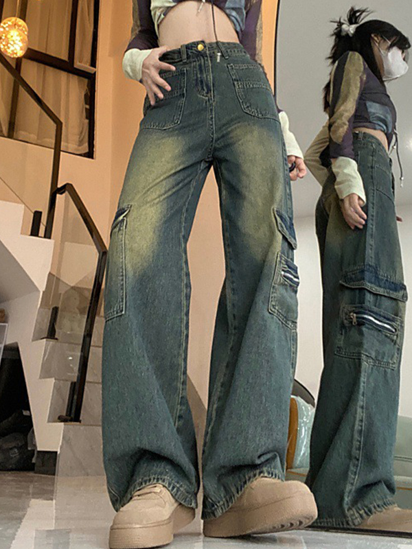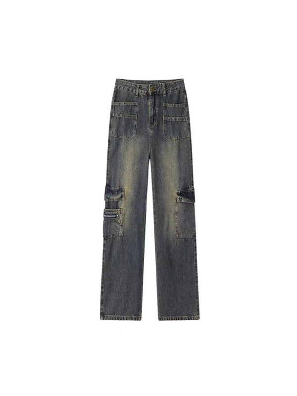 Jeans cargo con múltiples bolsillos y diseño de ropa de trabajo