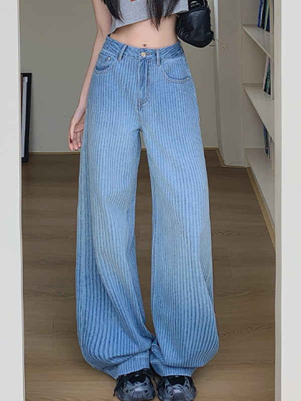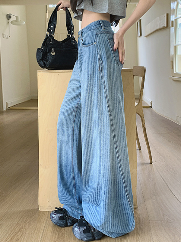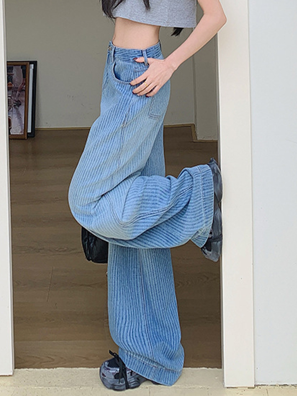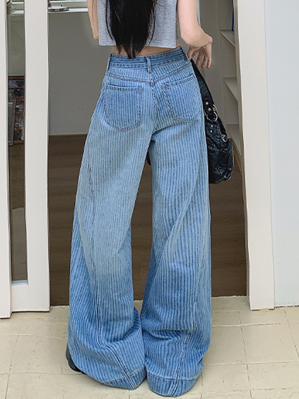 Vaqueros boyfriend de pierna ancha y rayas rectas