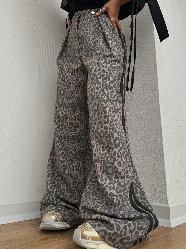 Sé el primero en valorar “Pantalones anchos con rayas laterales de leopardo”