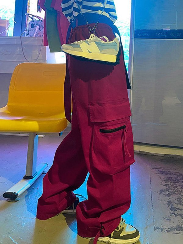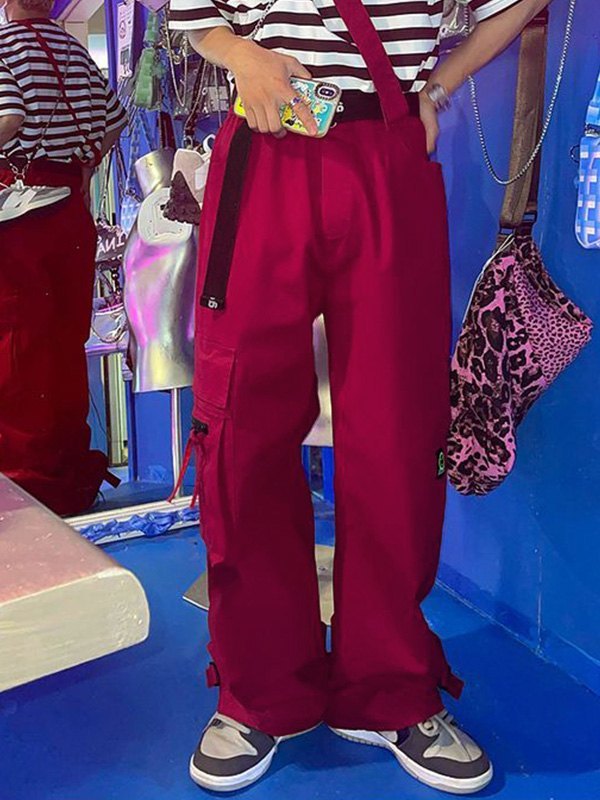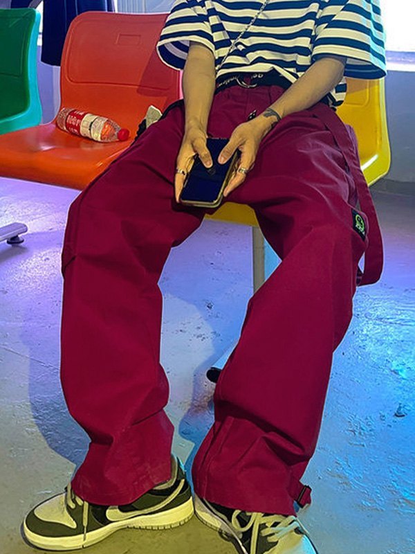 Descripción: Con una silueta favorecedora de pierna recta, estos pantalones cargo informales tienen un Cintura elástica con diseño de correa desmontable, cuenta con bolsillos cargo con cremallera, detalle de etiqueta sonriente en la parte delantera y trabilla en los puños.