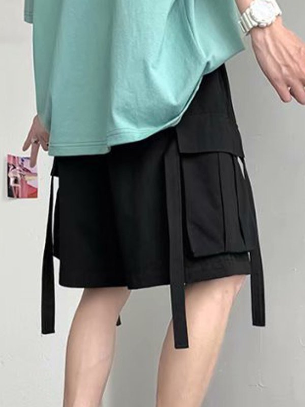 Descripción: Cintura con cordón elástico y bolsillos tipo cargo en las piernas correas en él, y tiene un diseño de paneles de etiqueta.