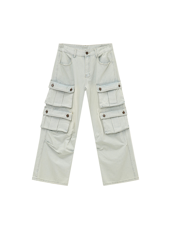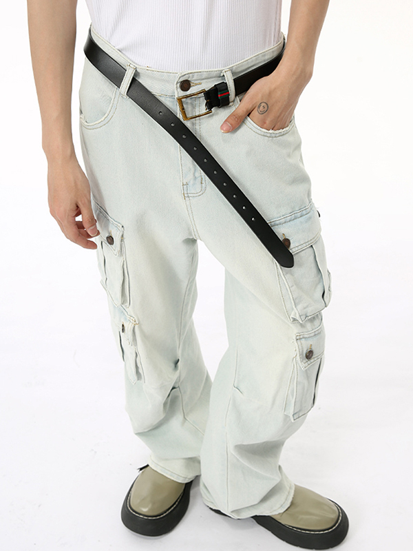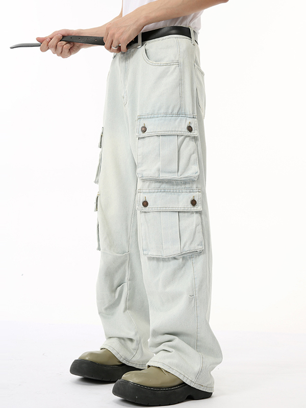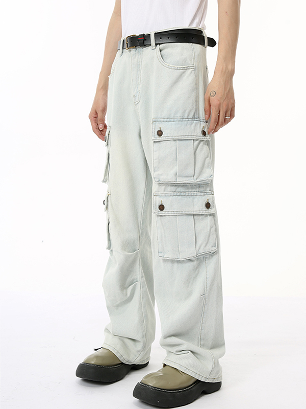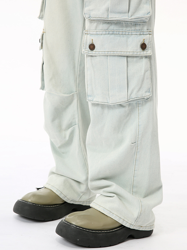 Vaqueros cargo con múltiples bolsillos y lavado claro