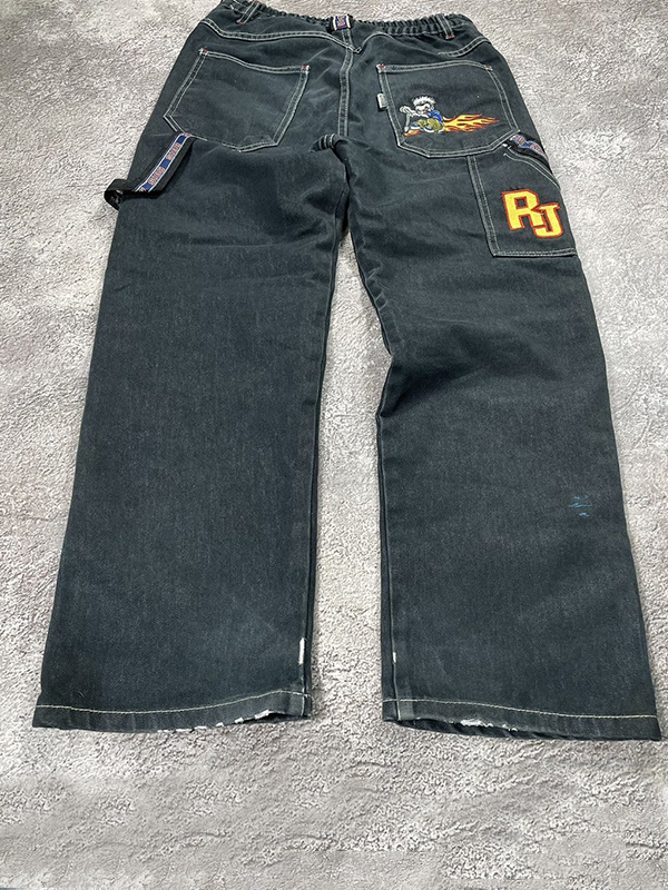 Diseño único: los jeans presentan un estampado de letras de colores en contraste, lo que los hace una pieza destacada en cualquier guardarropa.
