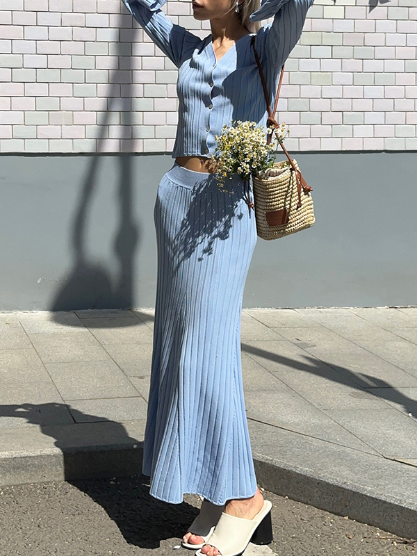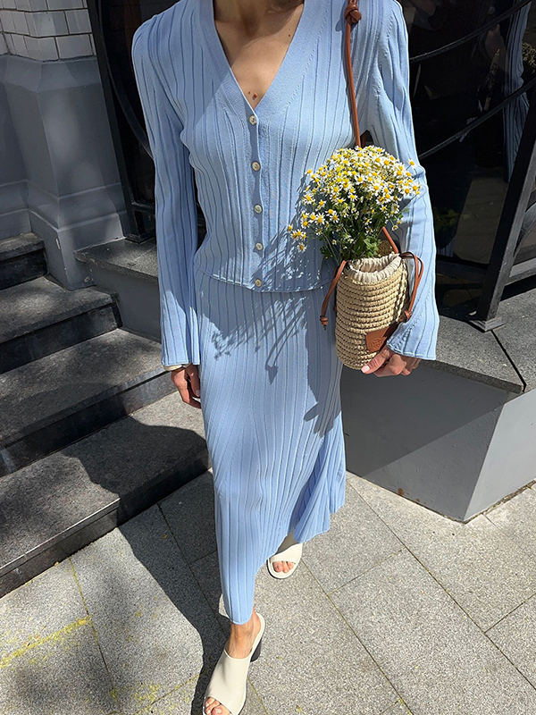 Sé el primero en valorar “Elegante traje de dos piezas con rayas verticales”