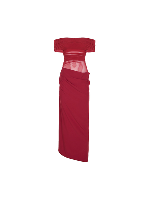 Sé el primero en valorar “Vestido largo de malla con un solo hombro y parches”